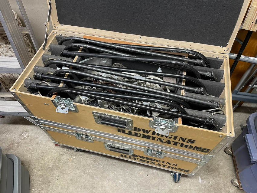 - Custom lighting system for ProPanels also available, shown in all the booth photos. The curved arm fits right into the top tube of ProPanels. Molex modular connectors/cords for all. Lighting: 20 custom wide beam led floodlights for ProPanels, CRI 95+, color temperature 2800, 110v 7.5 watt 75 watt equiv. retail $115 each. 400 watt power inverter for 12v battery operation. Battery system: 2 lithium batteries, 100AH each, chargers, inverter. Can power all lights for 3 days. Extension cords 2 Custom road cases stack for transport. $1500 for the lighting system. Booth photos - 4 of 8